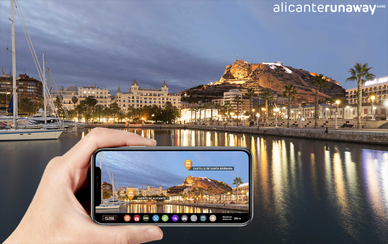 Alicante Runaway, es una aplicación tanto para iOS como para Android dirigida al mundo del turismo y del comercio. Esta aplicación aplica la Realidad Aumentada para ayudar al turista, sobre todo a encontrar lugares de interés, comercios, paradas de taxi, eventos y todo lo que ofrece la aplicación, de una forma fácil e intuitiva. El usuario sólo debe abrir la App y pulsar en RA.